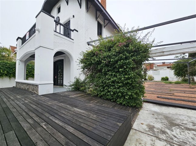 Buena fachada de estilo , muy característica de la zona con deck de madera en el frente . Al ingresar hay una puerta de madera alta y ancha con mucha presencia . Salón muy grande , muchas ventanas con vista tanto al frente como a los laterales , algunas de esta ventas estan hechas en Vitreux lo que le dan un estilo único y distinguido