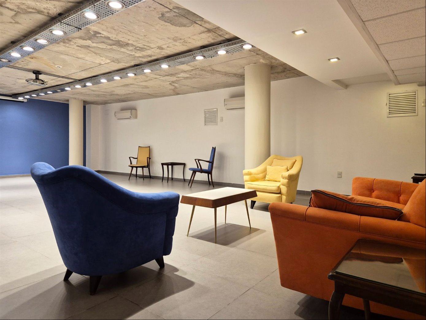 - Sala de uso múltiples - Sala de Conferencias o Sala de Reuniones- equipada con mobiliario, monitor y proyector. Costo mínimo de limpieza.