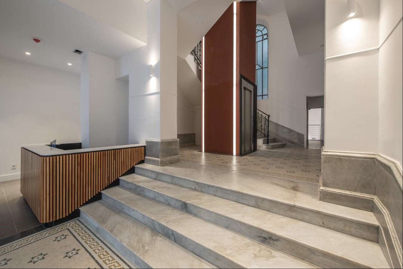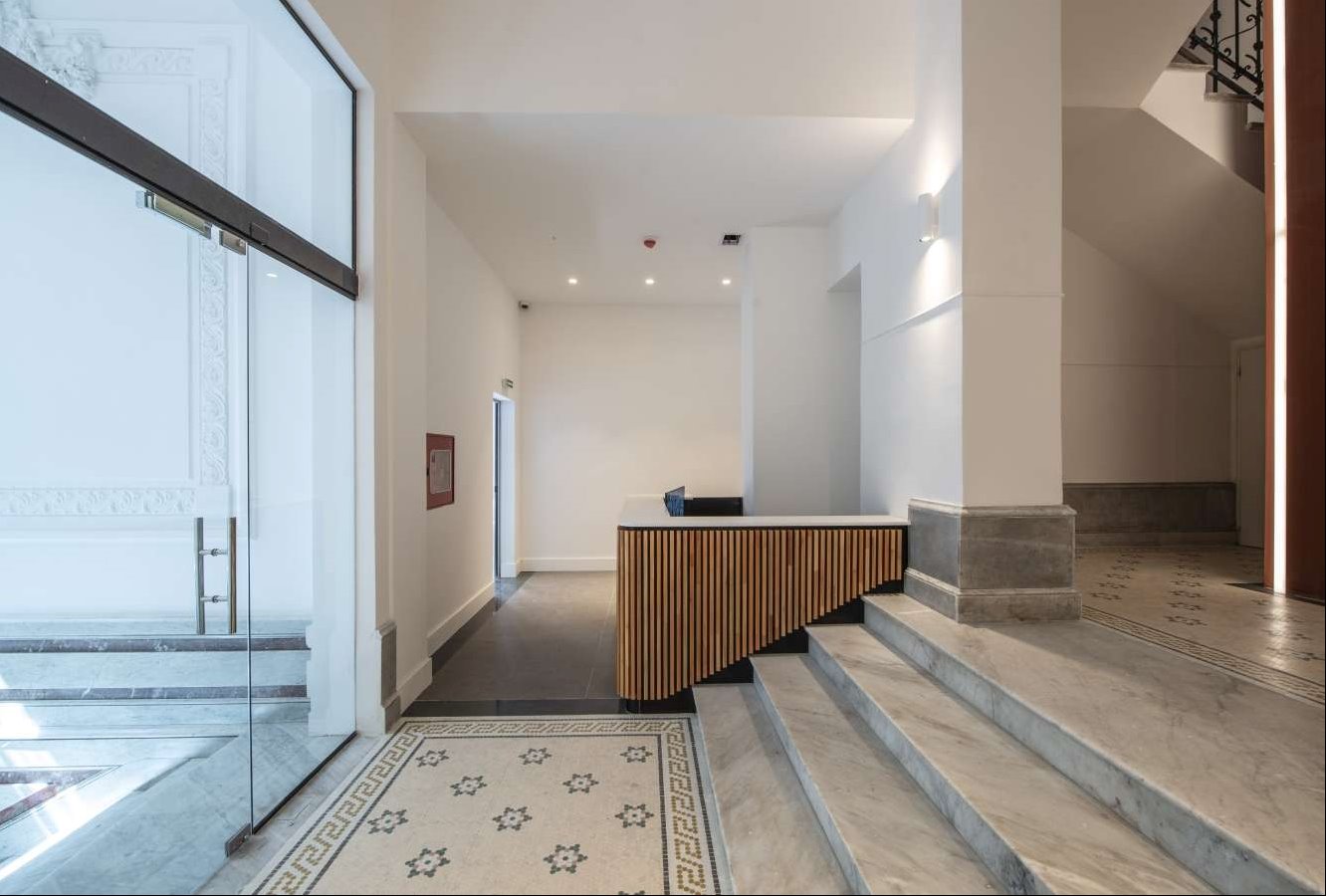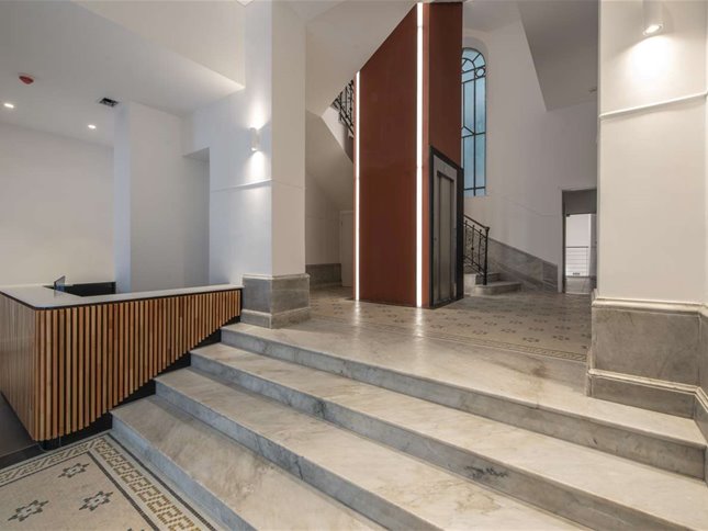 Se trata de un edificio corporativo que cuenta con importante hall de ingreso y amplio local comercial esquina. 4 plantas de aprox. 350 m.c. cada una. más áreas comunes. Todo el edificio fue integramente reciclado, sustituyendo todas las instalaciones. Importante reciclaje con terminaciones de calidad.